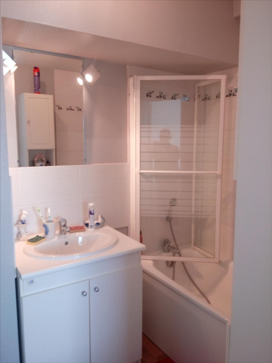 Bel appartement avec balcon situé au 1er étage comprenant entrée avec placard, séjour-salon avec coin cuisine aménagée et équipée (hotte, four et plaque vitro), une chambre avec placard, salle de bain et WC.