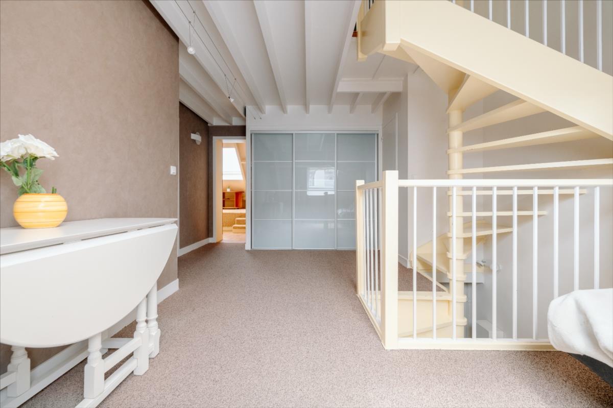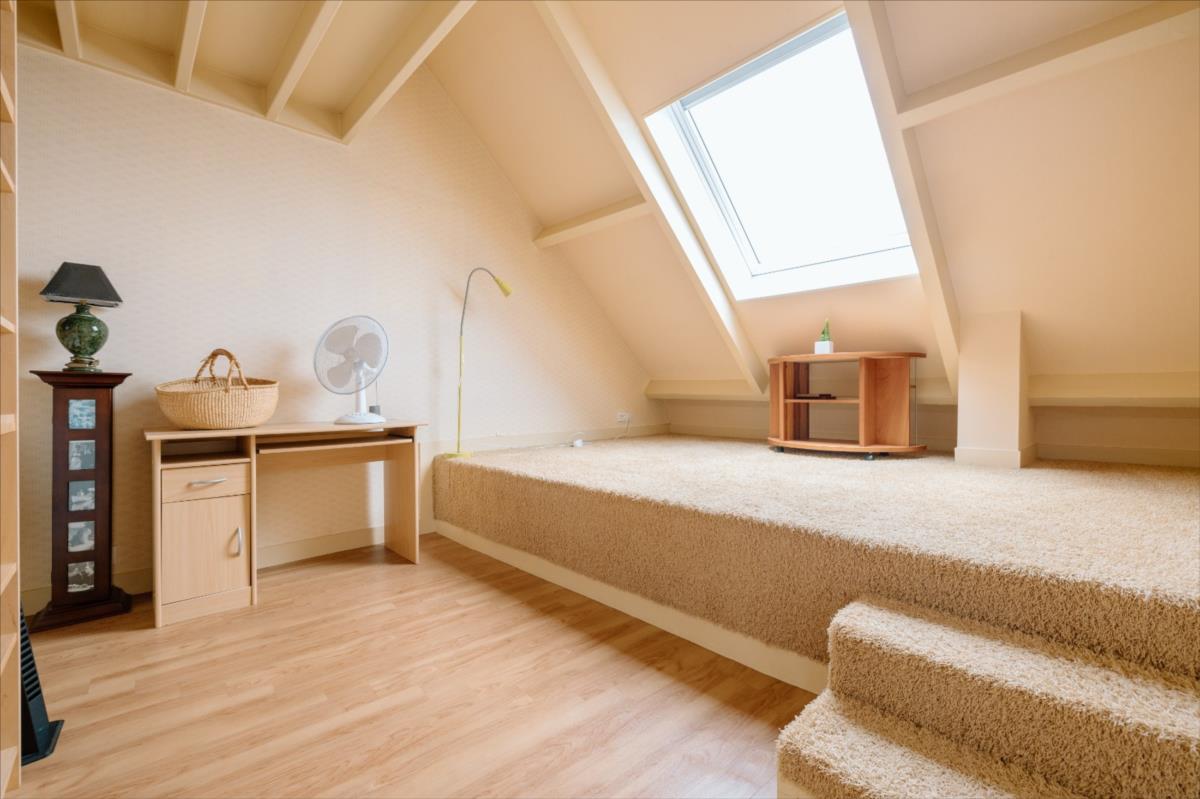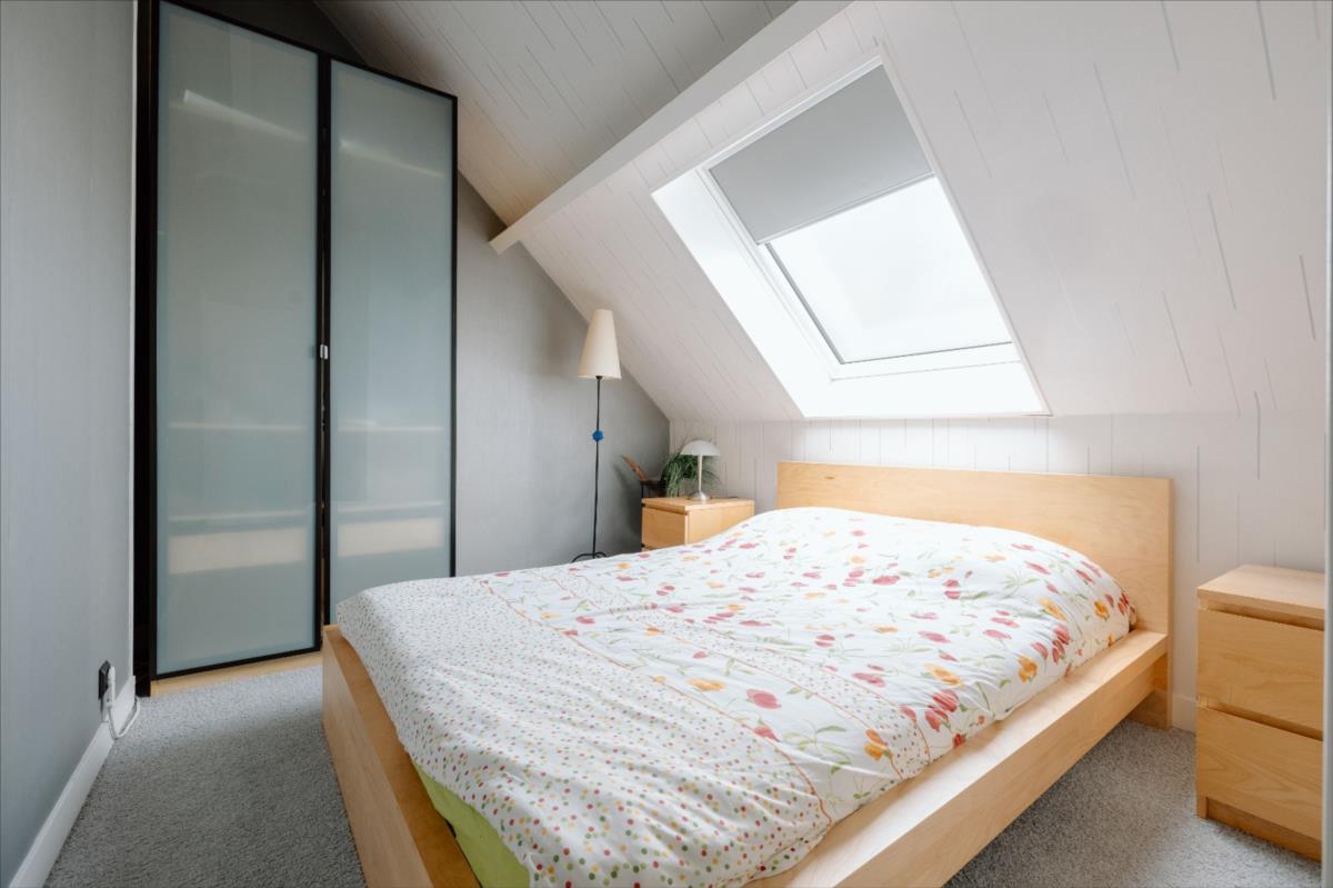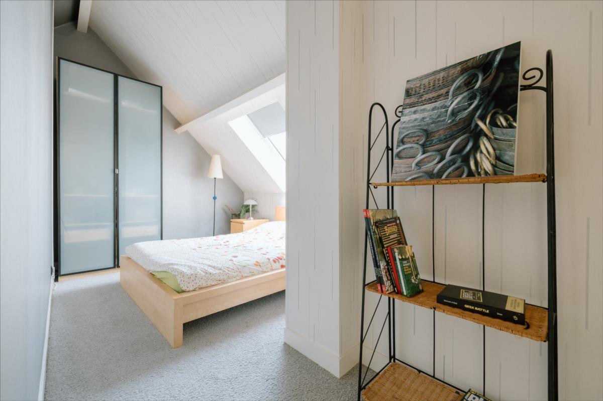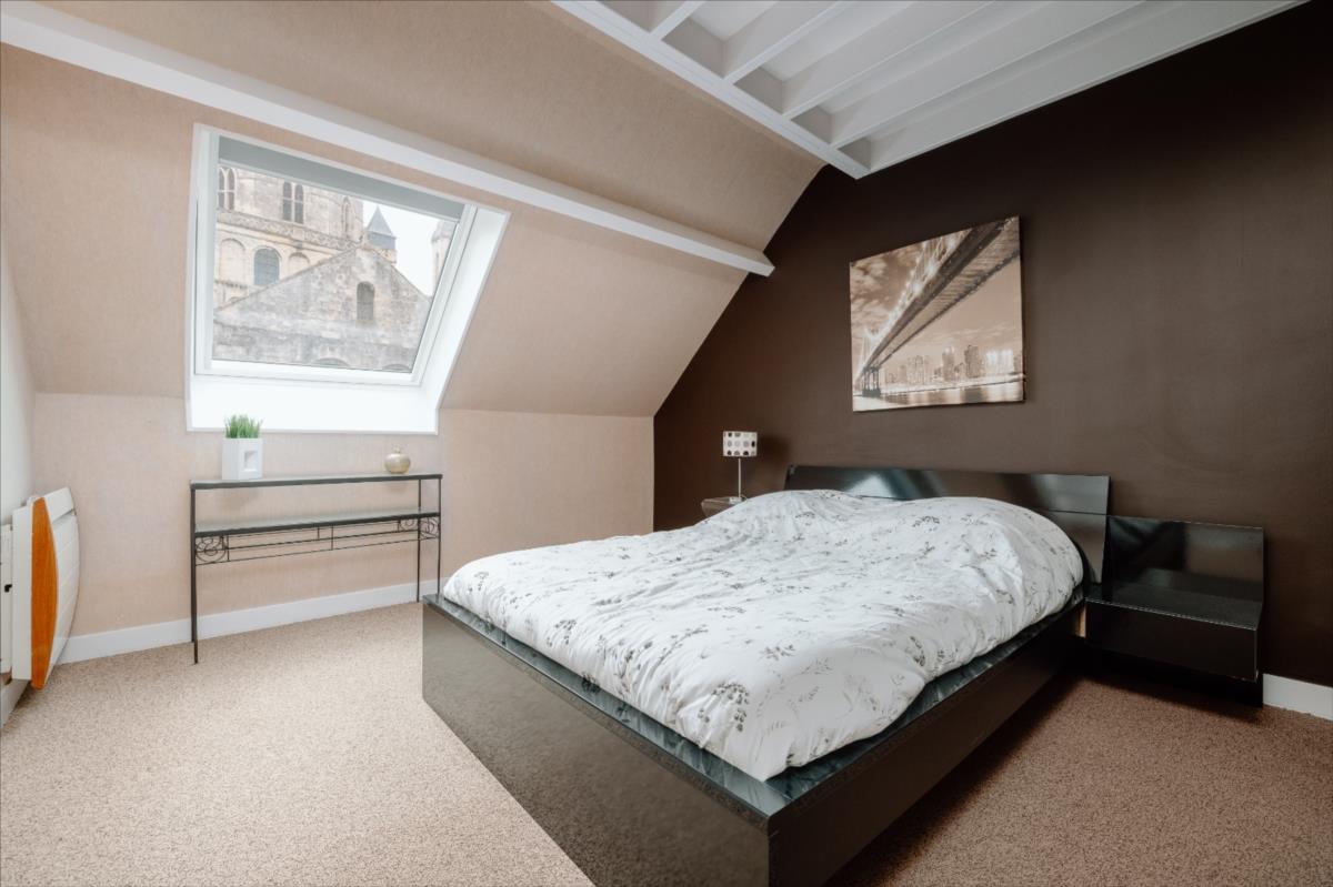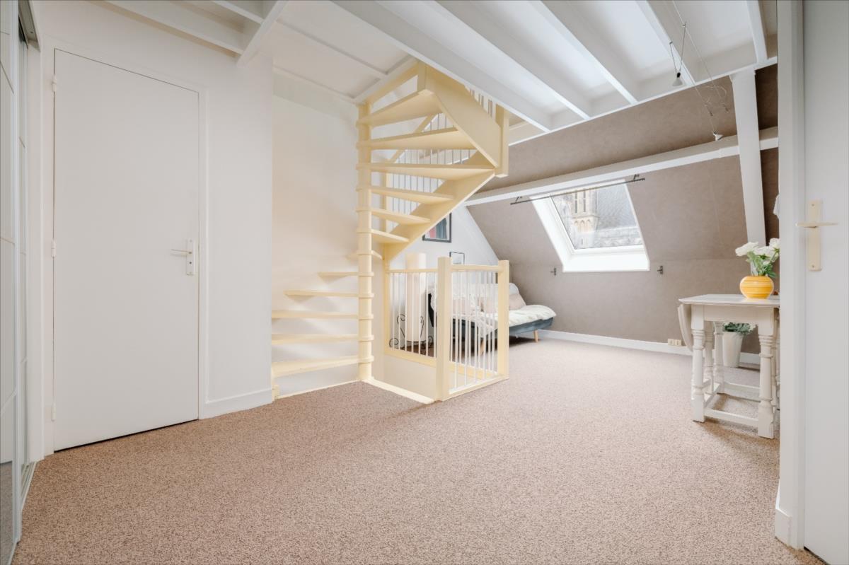 Au dernier étage : petit palier desservant deux chambres mansardées avec vue sur les toits et clochers de Caen, une salle d'eau avec wc.