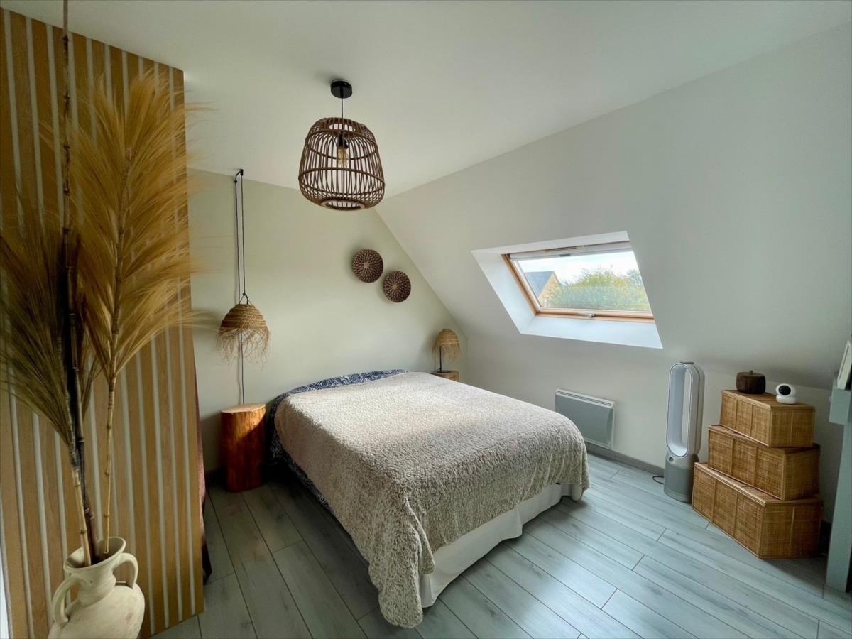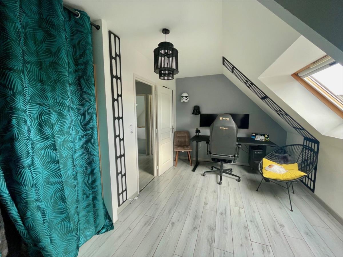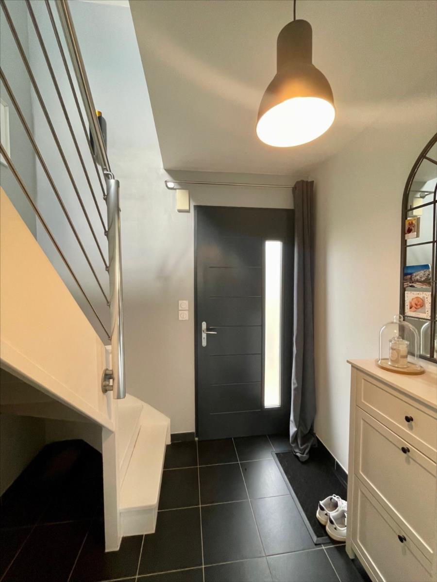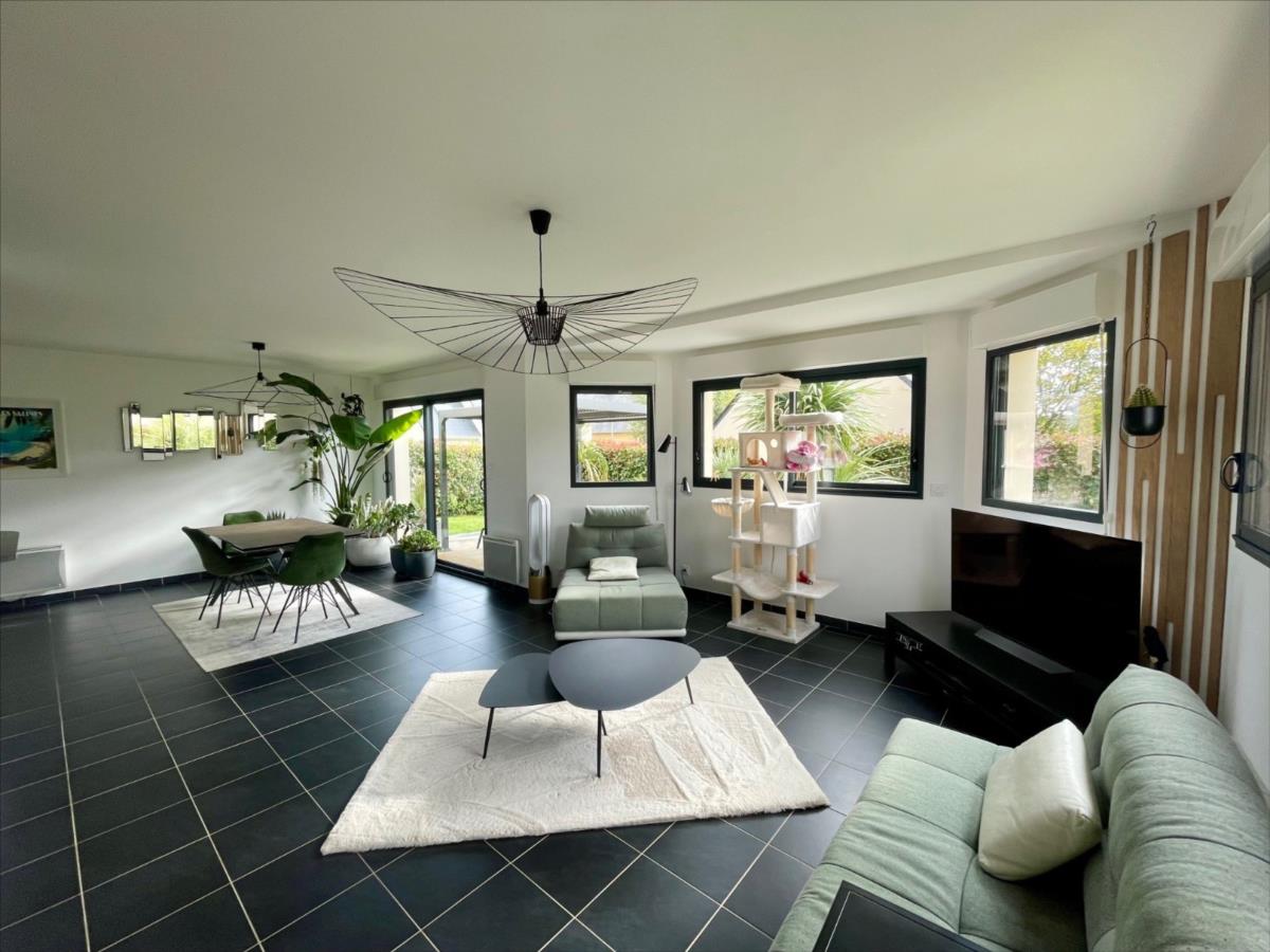 Dans une commune avec bus de ville, en impasse, maison très lumineuse, d'une surface de 107 m2 composée d'une entrée, placard, wc, cuisine aménagée et équipée ouverte sur un séjour-salon de 46 m2 avec un poêle à bois et orienté sud.