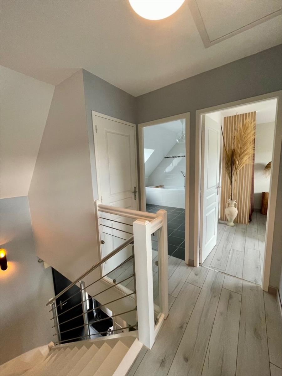 A l'étage : couloir desservant trois chambres, wc, une salle de bains avec douche et baignoire.