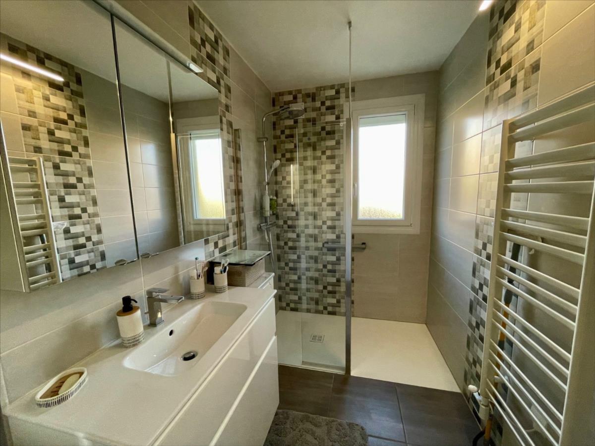 Fenêtres double vitrage PVC avec volets roulants électriques. Chauffage au gaz de ville.
