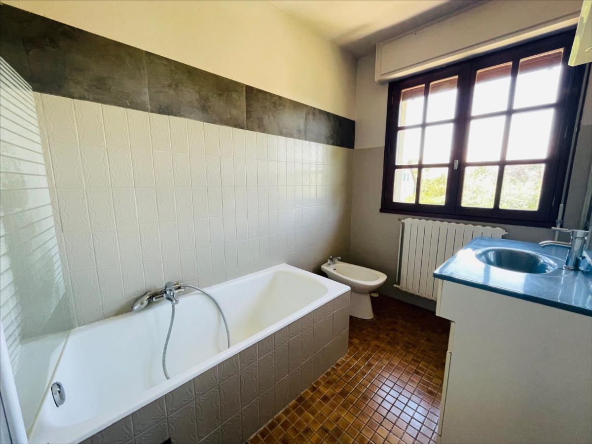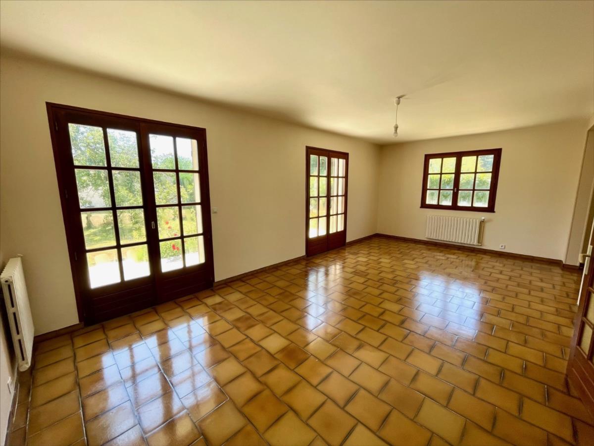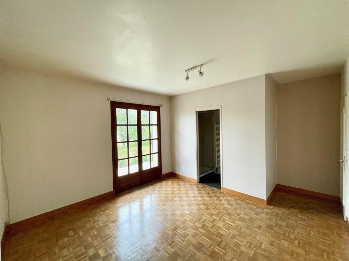 Dans un quartier au calme et proche école, maison lumineuse d'environ 150 m2 sur sous-sol complet et composée d'un hall d'entrée avec placards, wc, cuisine aménagée, vaste salon-séjour avec cheminée et orienté sud-est, une chambre avec salle de douche.